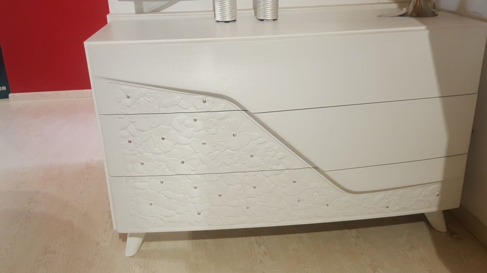 legno laccato bianco e finitura miele